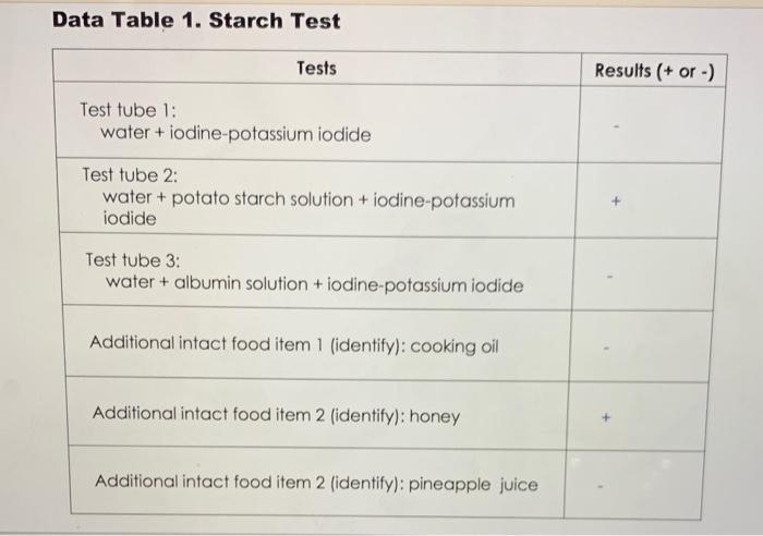 Solved Data Table 1 Starch Test Tests Results Or Test Chegg Com